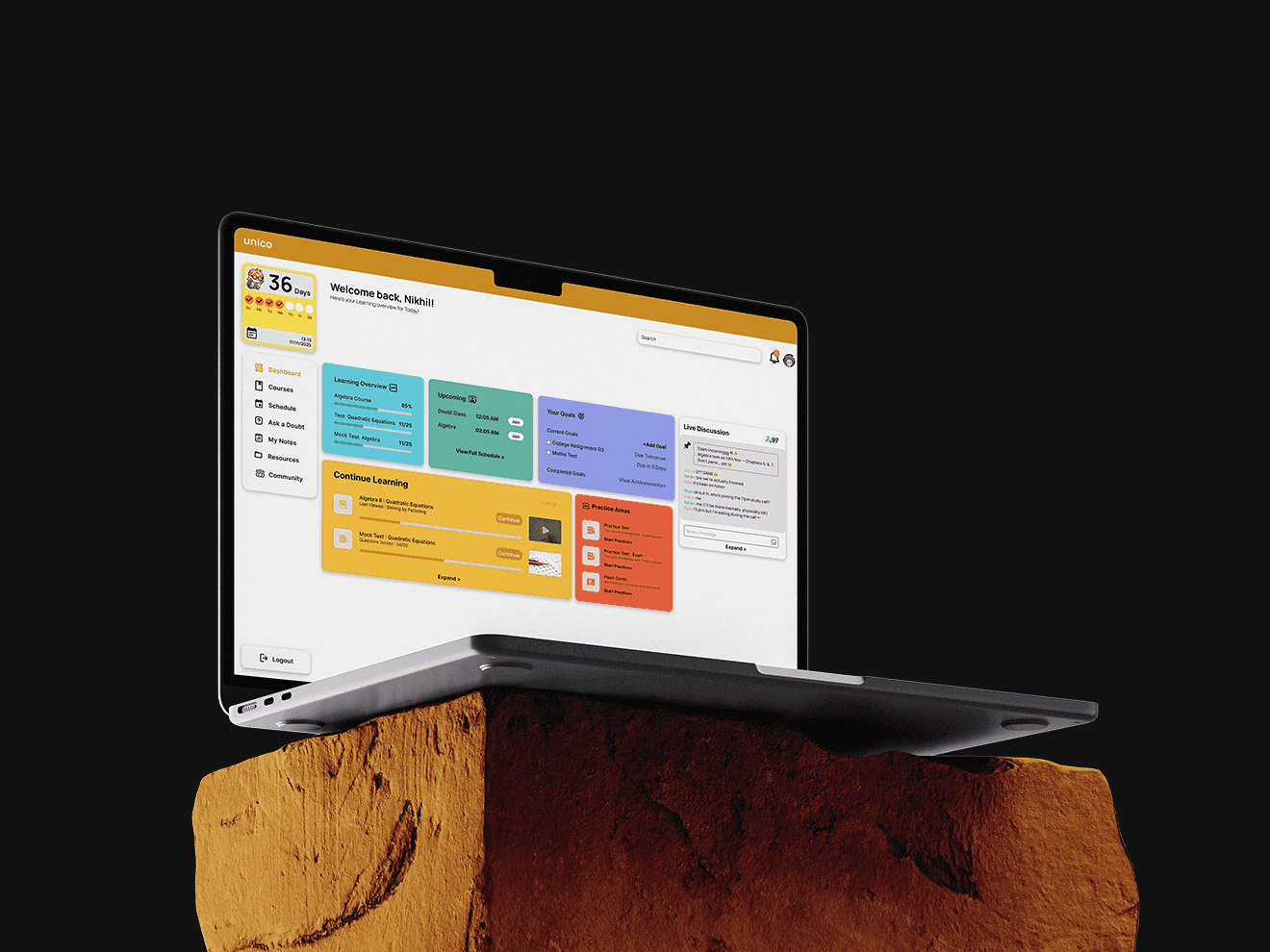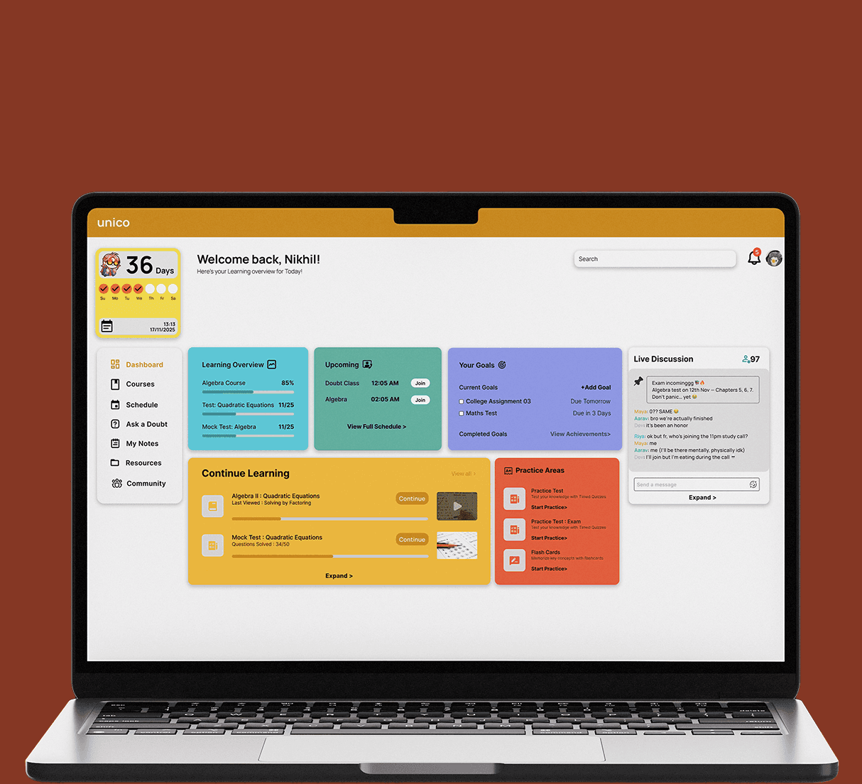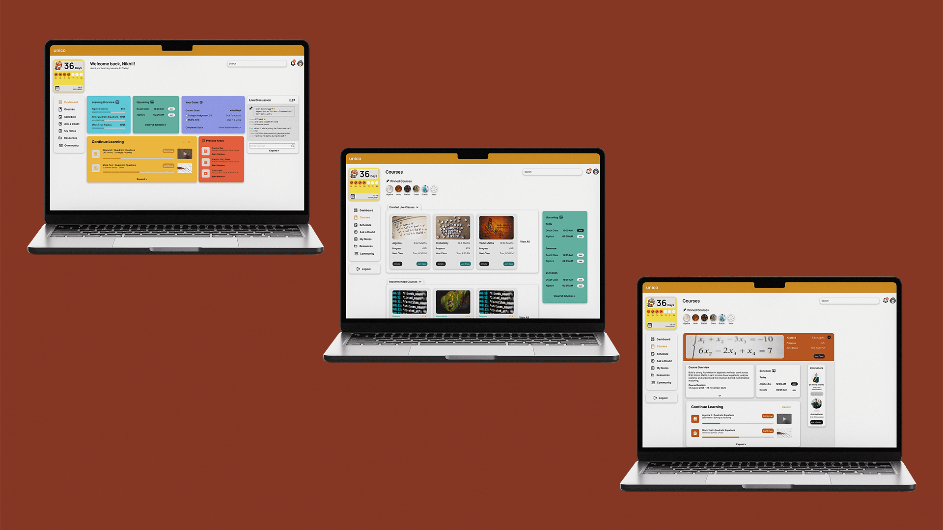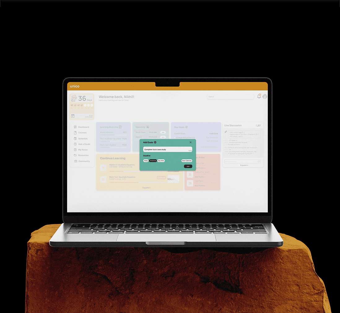 Unico is a thoughtfully designed learning platform that simplifies how higher-education students engage with structured content, track their progress, and stay consistent through a clean and motivating interface.