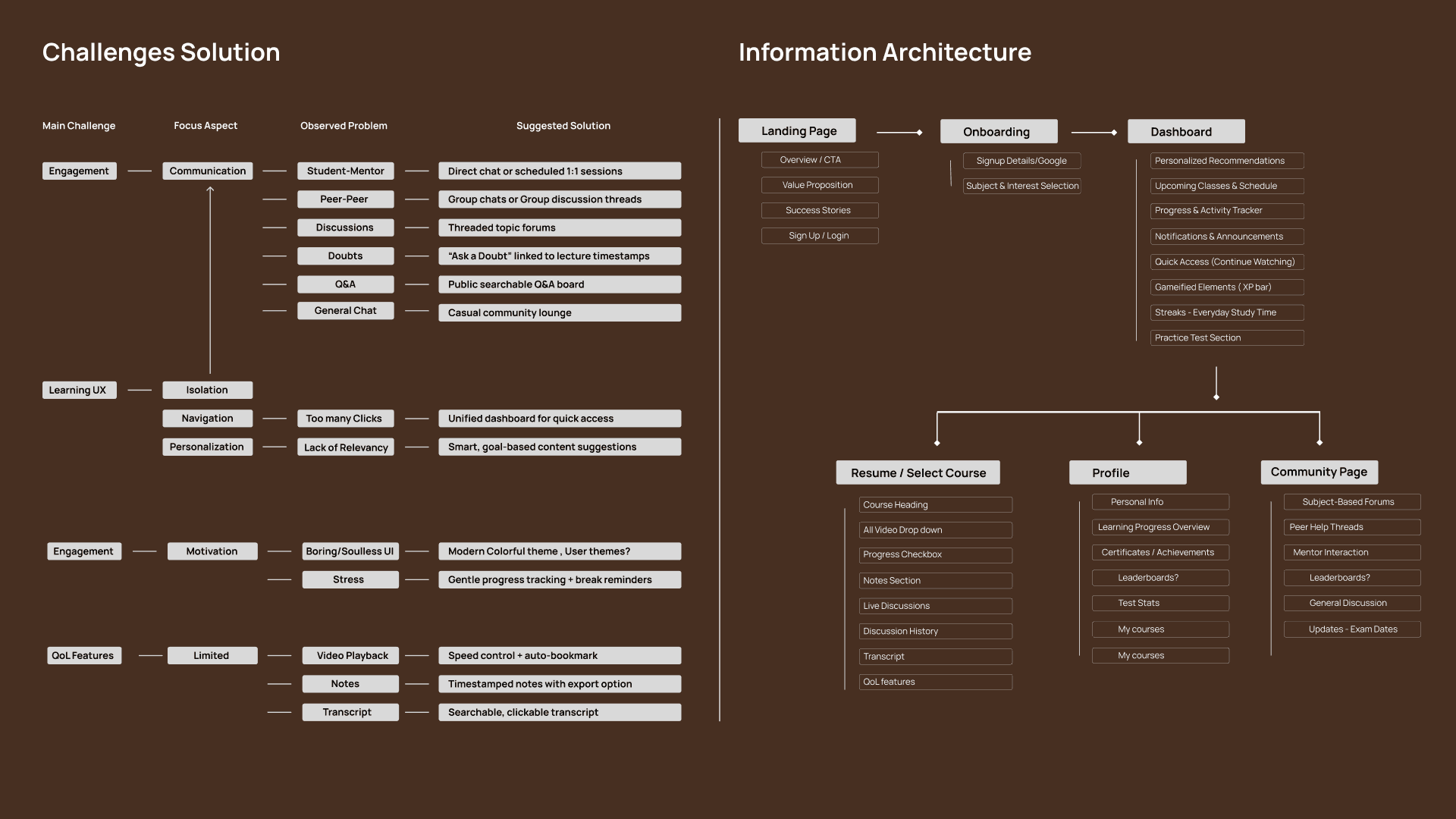 I focused on simplifying the experience to reduce cognitive load through clear hierarchy and intuitive navigation. Key features were made easier to discover, while progress indicators and peer interaction elements were introduced to support continuous engagement and motivation.
